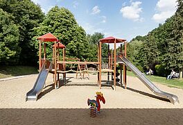 Im Stadtgebiet hat die kommunale Wohnungsgesellschaft die meisten Spielplätze gebaut? Das ist auch nur halbwahr. Zahlreiche Spielplätze sind von dieser geschaffen worden, dennoch hat die Stadt am Markt, im Stadtpark und Altdorf neue Spielplätze geschaffen und erneuert nun auch den in der Puschkinstraße.